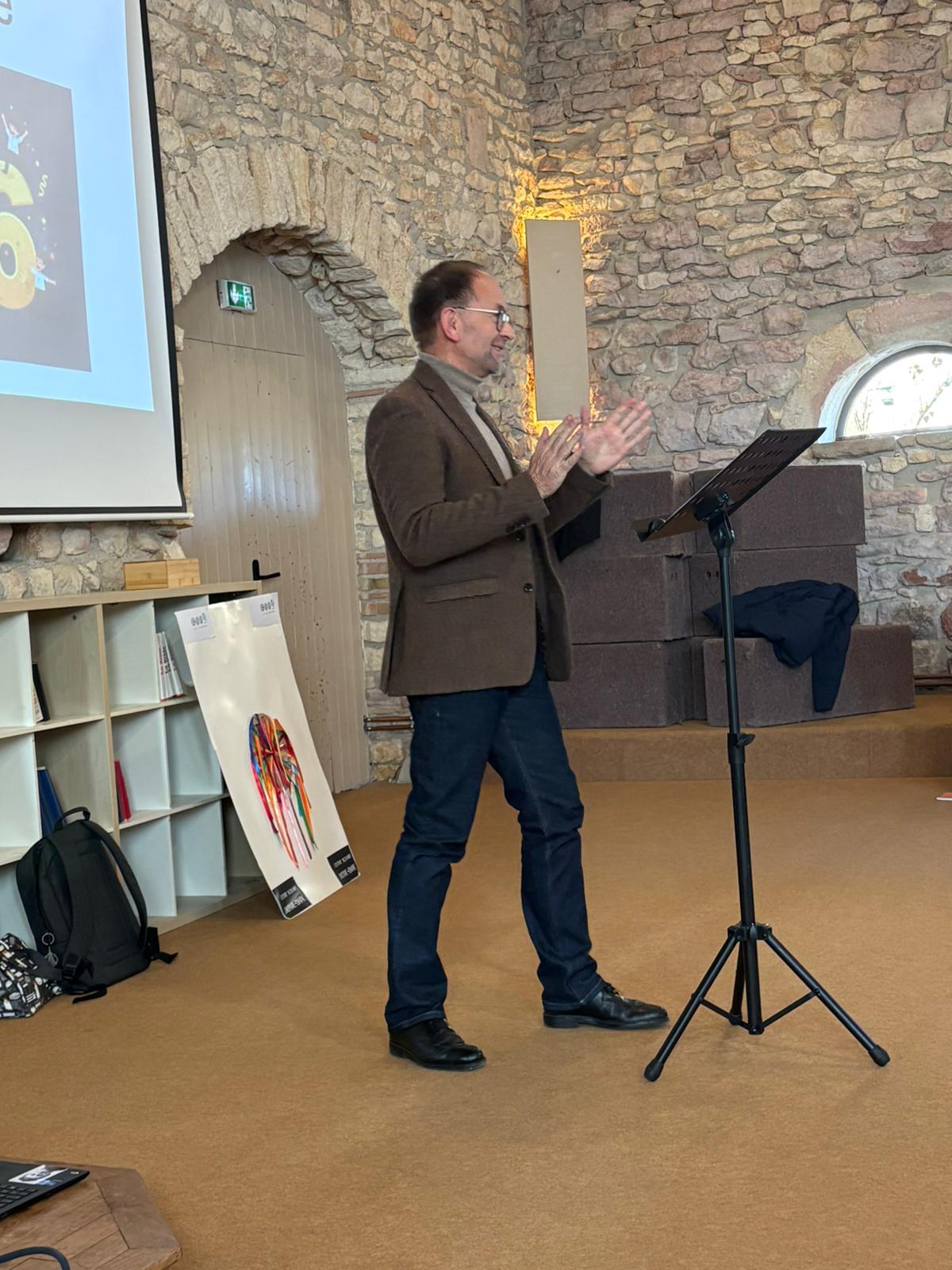 Pour l’occasion, Jean BRUN Adjoint au directeur diocésain nous a aidés à approfondir le thème du lien. Il s’est en long et en large appuyé sur la figure de Bernadette SOUBIROUS, la petite voyante de Lourdes et sur la parabole du Bon samaritain. Parlant du regard de la Vierge, Bernadette disait : « “Elle m’a regardée comme une personne regarde une autre personne” Continuons toujours à regarder nos élèves et nos collègues avec cette même confiance, cette considération et cette humanité qui fait grandir, et tendons leur la main comme le Bon Samaritain du tableau de Rembrandt. Après la réalisation d’une œuvre collective colorée reprenant les valeurs chères à chacun et où on pouvait lire : Espérance, Vérité, Humilité, Humour, Ecoute, Simplicité, Bienveillance, Fraternité, Partage, Confiance, Loyauté, Unité et tant d’autres encore, l’après-midi s’est achevée par une messe dans la jolie chapelle du site.
