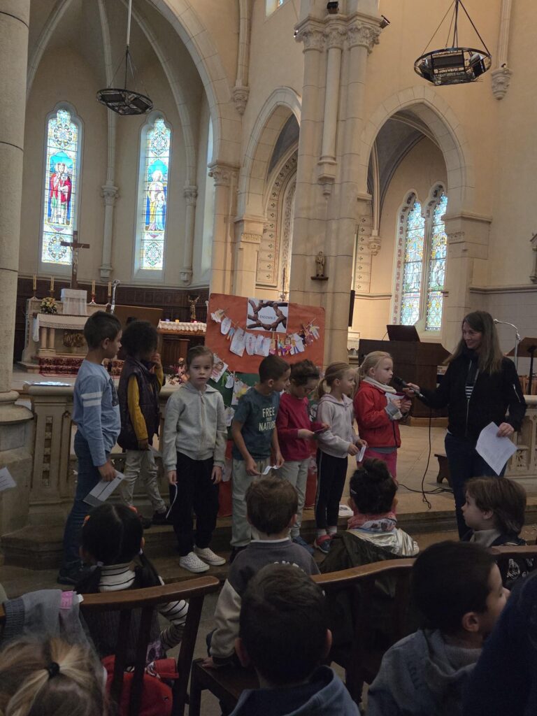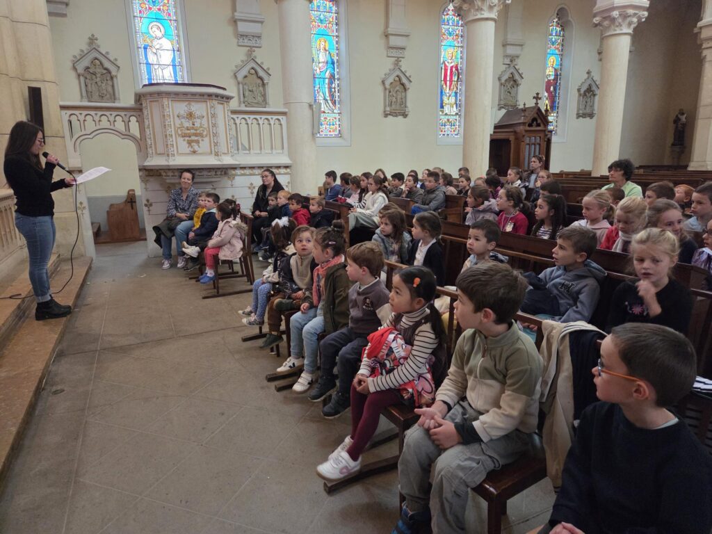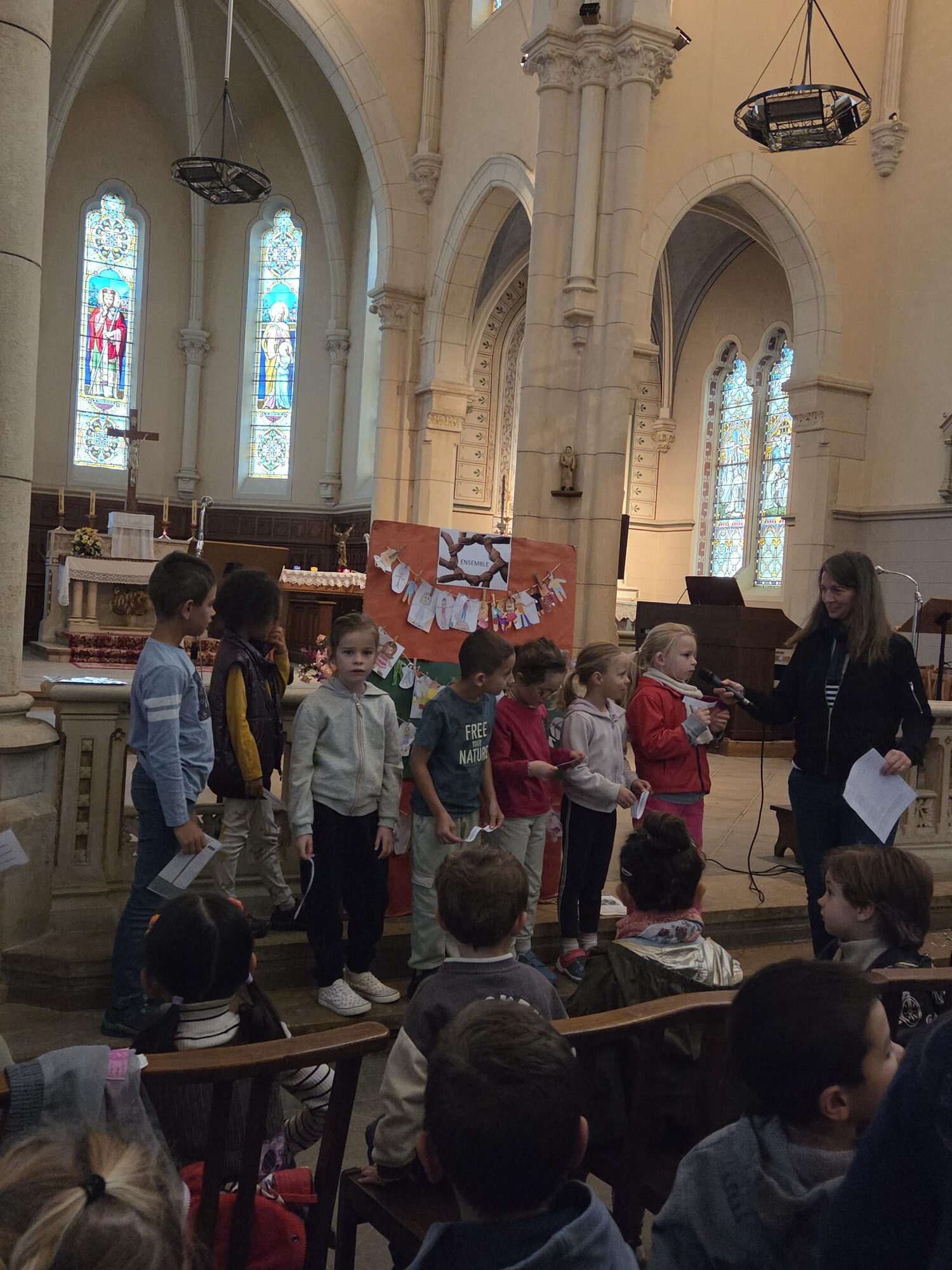 Les voix joyeuses des enfants ont résonné dans l’église, chantant “Nous sommes un dans un lien d’amour.”Chant de l’année