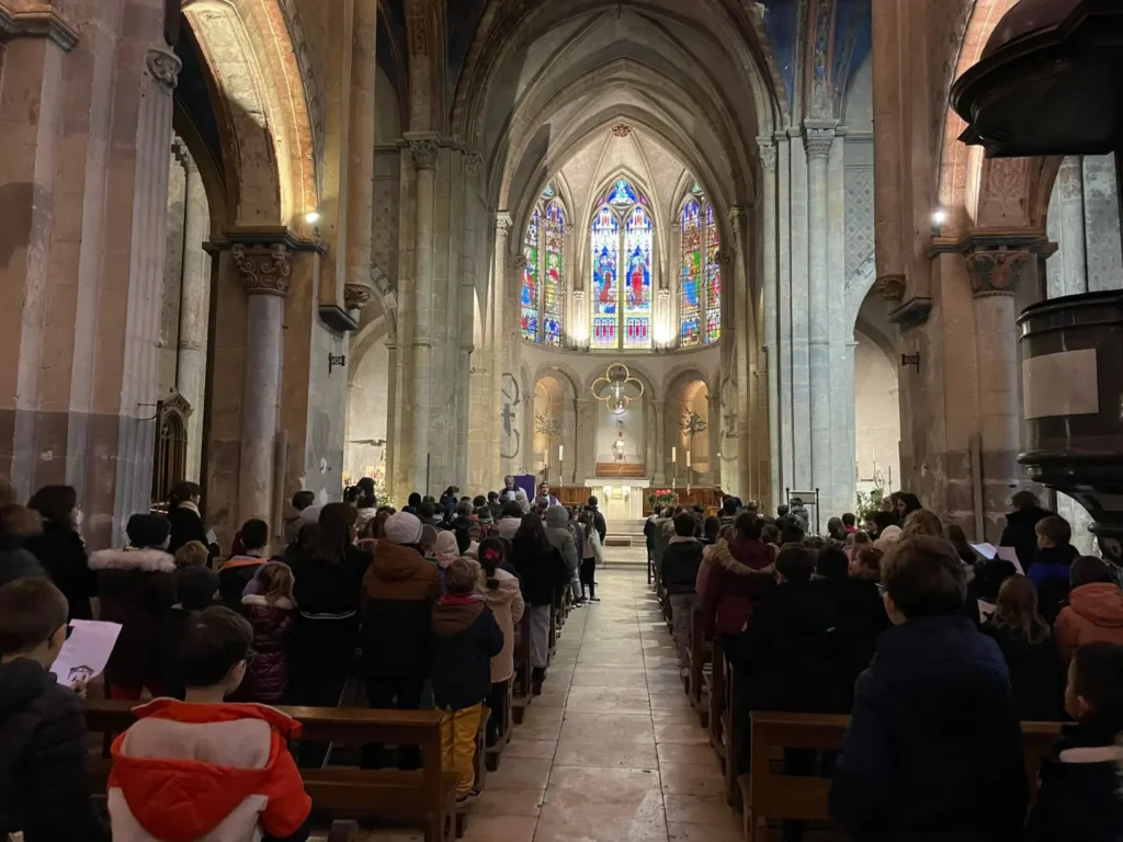 Ce vendredi 19 décembre 2025, les élèves de l’école Notre Dame ont assisté à une belle célébration de l’Avent “Se préparer à Noël en tissant des liens d’amour” en présence de tous les membres de la communauté éducative ✨🎄