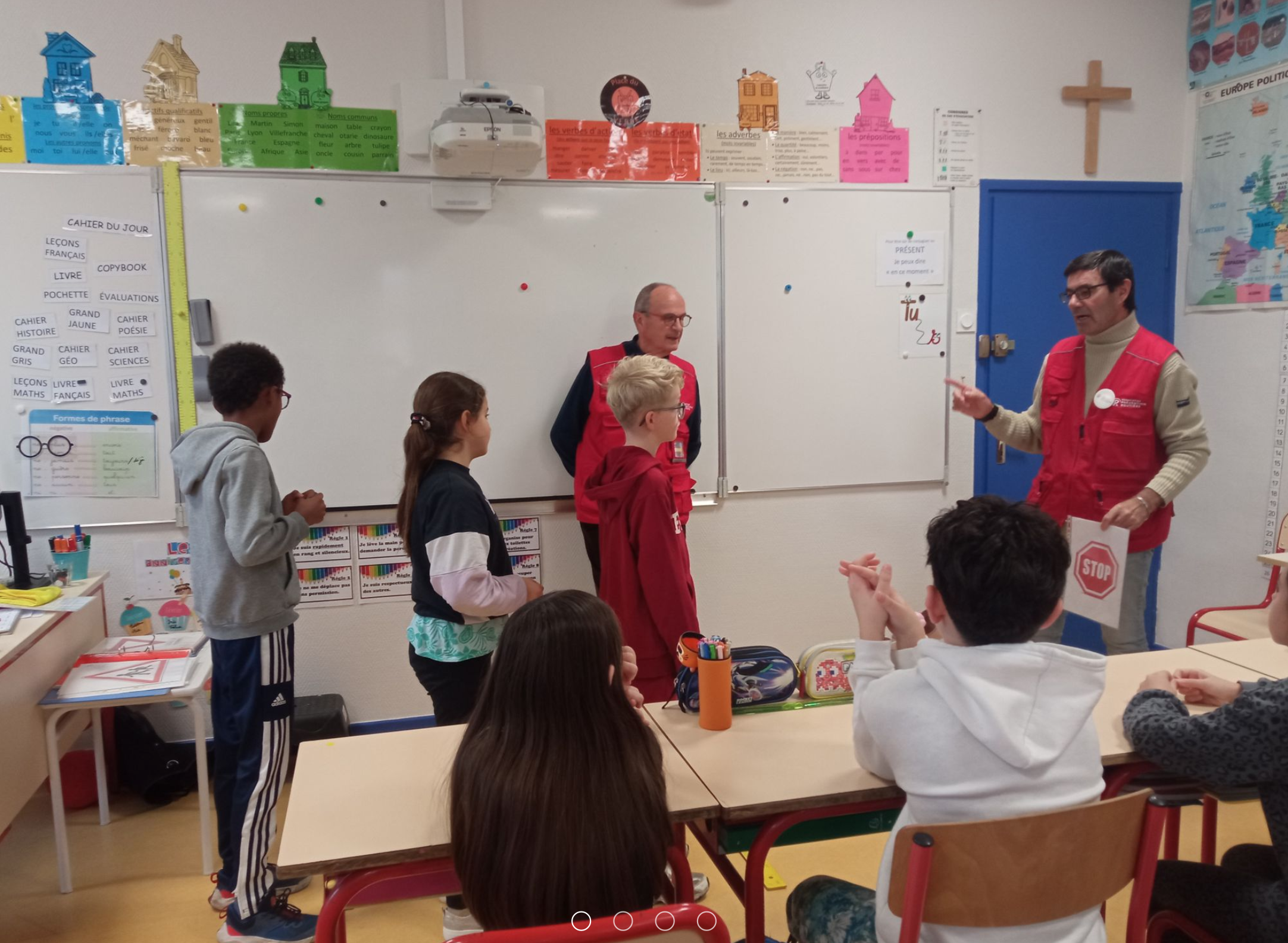 Ce lundi 17 novembre, deux bénévoles de l’association de prévention routière, Roger et Rénald, sont intervenus auprès de tous les élèves de CM2.