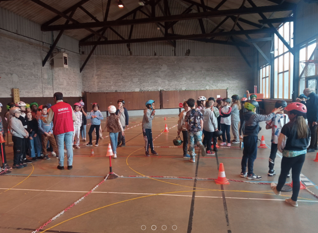 Après le déjeuner, nous nous sommes rendus au gymnase de la Tannerie pour l’épreuve pratique. Les enfants ont évolué à vélo sur une piste comprenant divers panneaux routiers à respecter.