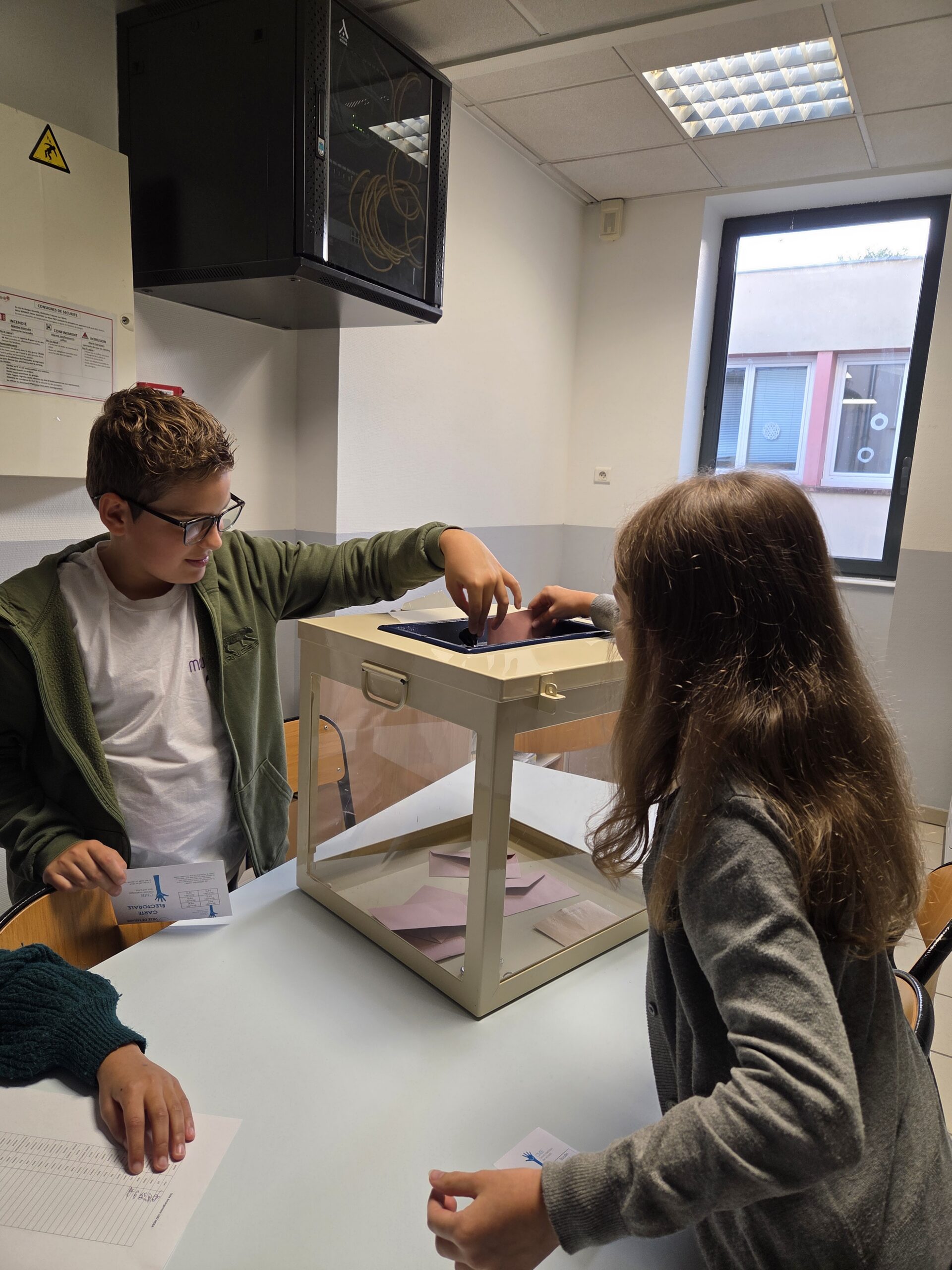 Pour rendre l’événement aussi authentique que possible, la mairie a fourni tout le nécessaire pour organiser un véritable scrutin : des isoloirs, une urne et des enveloppes ont été déposés dans l’école, afin que les élèves puissent voter dans un cadre sérieux et formel. L’organisation de cette élection a été pensée pour refléter au plus près le processus électoral réel, renforçant ainsi l’aspect éducatif de l’événement.