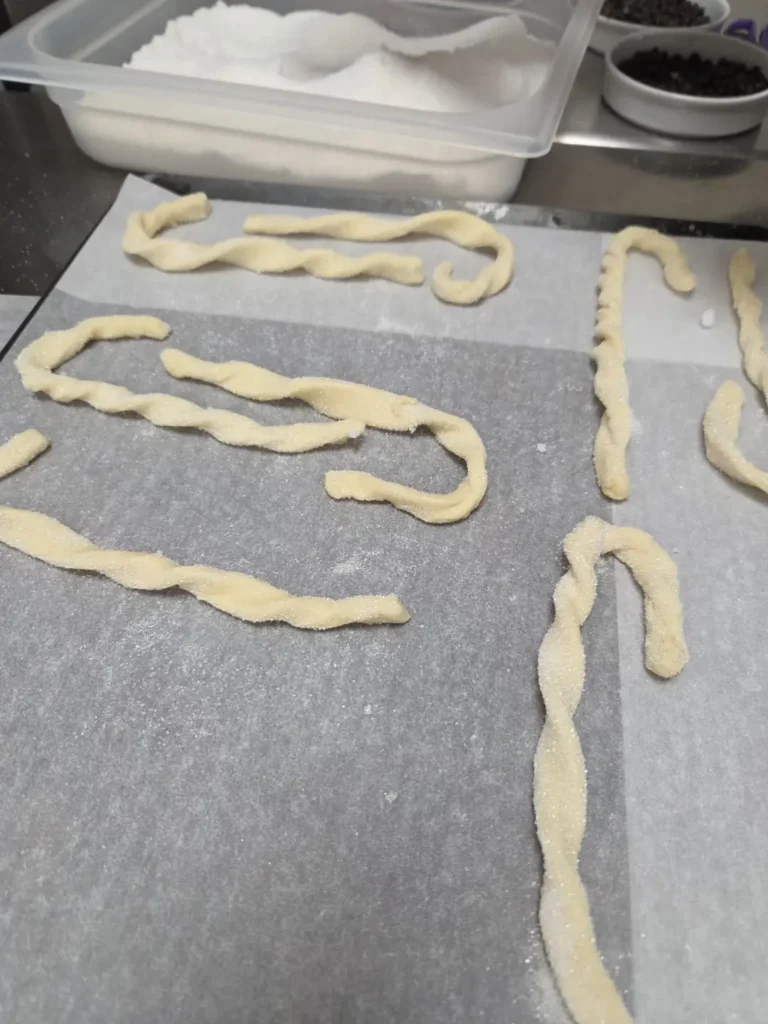 Lors de l’atelier cuisine, la pâte feuilletée avait déjà été préparée par les jeunes chefs fraichement diplômés. Les enfants ont pu la manipuler, la rouler et la façonner pour réaliser de jolies cannes torsadées. Avec beaucoup de concentration et de plaisir, chacun a créé sa propre gourmandise et est reparti fier de sa réalisation.