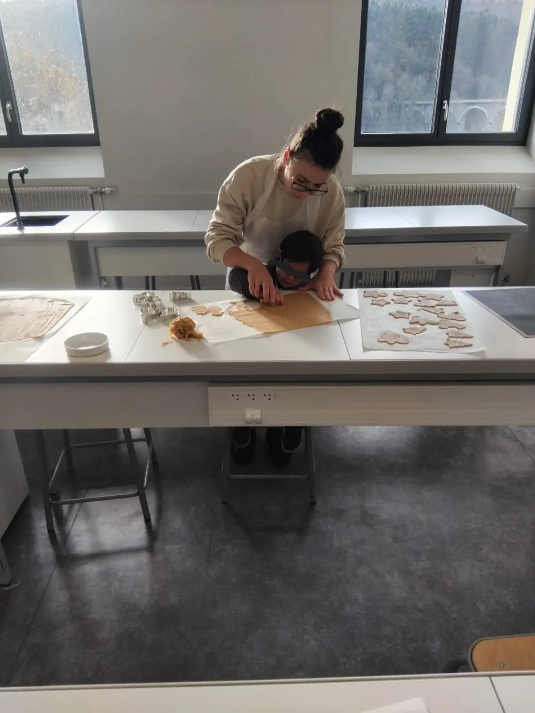 Ensuite, chaque groupe est passé à l’atelier pâtisserie. Les enfants ont découpé leurs biscuits avec des formes amusantes et, après la cuisson, ont pu décorer leurs sablés avec du glaçage, des perles sucrées et plein de petites décorations colorées. Chacun a laissé parler sa créativité et est reparti avec ses propres biscuits décorés.