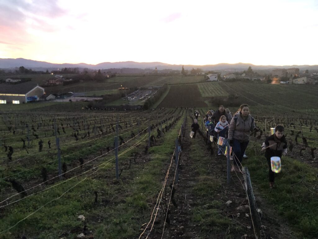Un beau moment de partage où les douces lumières portées par les enfants scintillaient dans les vignes.