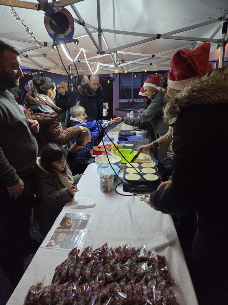 L’Apel avait organisé son traditionnel goûter de Noël, chocolat chaud, crêpes et marrons chauds pour les petits, vin chaud, vin blanc et huitres pour les plus grands. Une belle soirée avant Noël où les enfants ont pu profité des différents stands, conteuse, maquillage, photo avec le Père Noël. De quoi partir en vacances avec des étoiles plein les yeux.