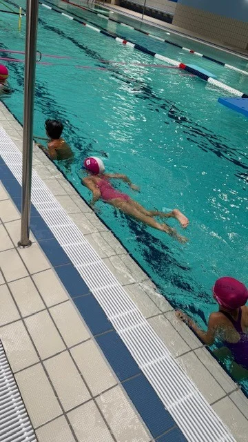 Les 16 élèves de CP-CE1 et CE2 sont heureux comme des poissons dans l’eau à chaque séance le vendredi après-midi.