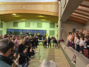 Ce vendredi 5 décembre, comme chaque année, l’école publique et l’école privée de St Vérand se retrouvaient pour chanter ensemble. Un beau moment de partage pour participer à la collecte de dons au profit du Téléthon !